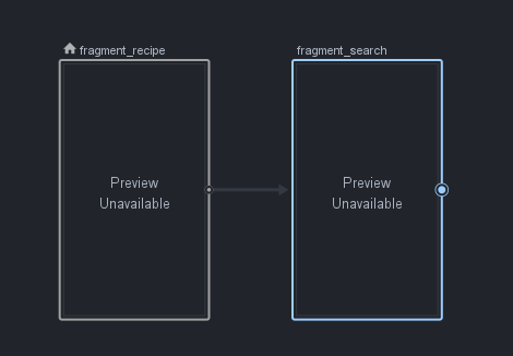 다음과 같이 한쪽 item은 fragment의 id 한쪽 에는 recipe_nav_graph라는 navigation의 id가 들어 가 있습니다.